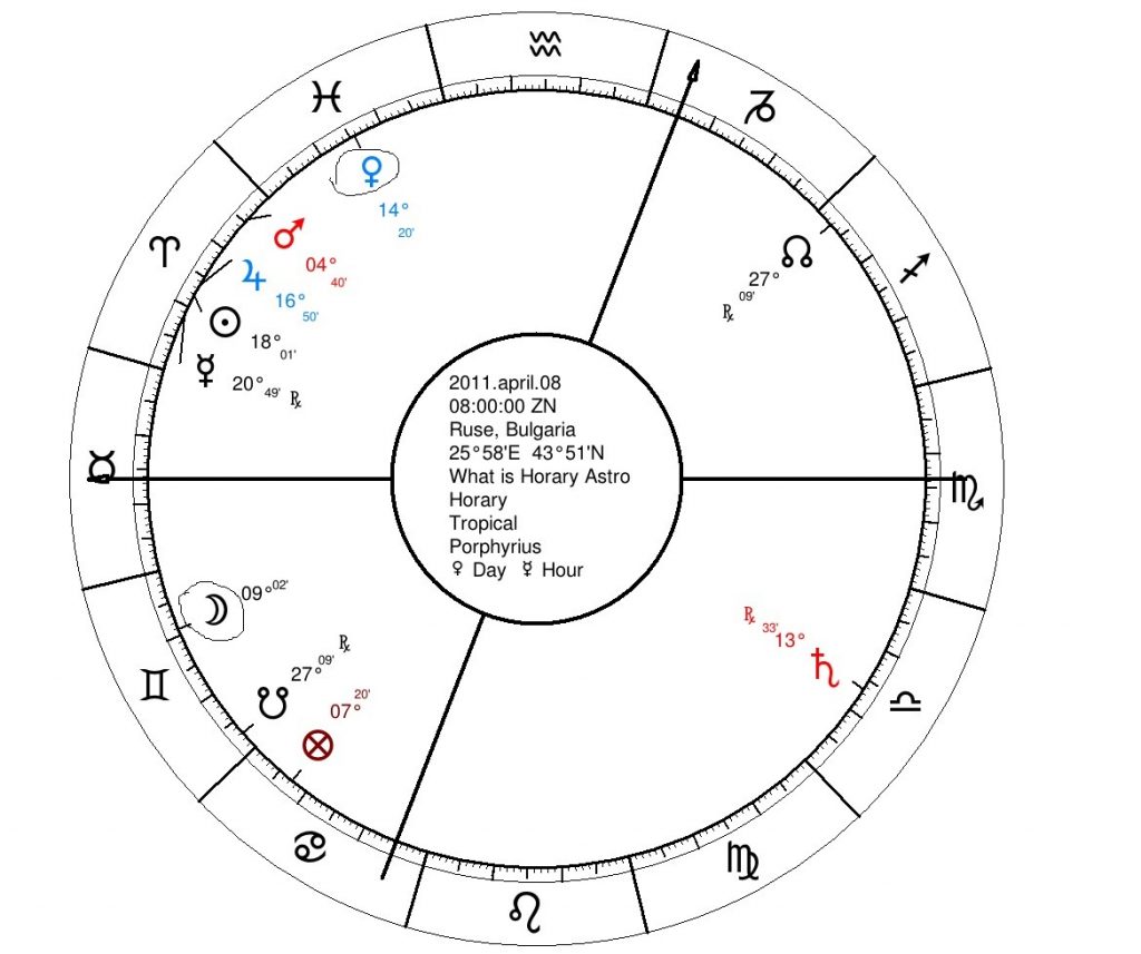 Отговорът е че ако рожденият хороскоп представлява едно голямо музикално училище, съдържащо целия ви живот, то хорарната Астрология съдържа шкафчето ви, в което се намира необходимия ви музикален инструмент, когато сте били на 10 години, и точно него търсите. Въпросната е като лазерна хирургия. Не е необходимо да ви се бърника из целия организъм, за да се разреши проблема, а да се концентрира вниманието върху точното място.