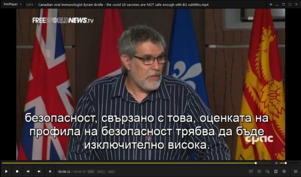 Превод и субтитри от мен на изказването на канадския вирусен имунолог Байръм Бридъл.